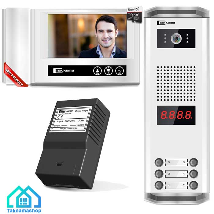 پکیج آیفون تصویری شش واحدی تکنما شماره 7 همانند دو پکیج قبلی از مانیتوری 7 اینچی بهره میبرد اما مانیتوری که برای این پکیج انتخاب شده مدل d70m است که حافظه خور است و میتوانید تصاویر را به صورت دستی و یا خودکار ثبت و در حافظه ذخیره نمایید. مانیتور این پکیج آیفون تصویری همچنین به قابلیت ارتباط با واحد نگهبانی و قابلیت های دیگری نیز مجهز شده و دکمه های آن نیز همگی لمسی هستند. و اما پنلی که برای پکیج آیفون تصویری تکنما لحاظ شده از پنل های ساده است که بدنه ای فلزی دارند و همچنین دوربین بسیار با کیفیتی را به خود اختصاص داده اند که این دوربین قابلیت تنظیم دارد و از سویی در شب نیز دید بسیار خوبی را برای کاربر فراهم میکند. برای تامین برق پکیج آیفون تصویری 6 واحدی تکنما یک ترانس 1501 در نظر گرفته شده که سازگاری بسیار خوبی با تمامی اجزا دارد.