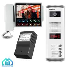پکیج 4 واحدی آیفون تصویری تکنما شماره 15 از لحاظ سایز مانیتور با دو پکیج قبلی متفاوت است اما امکانات مانیتور هیچ تفاوتی با یکدیگر ندارند. مانیتور این پکیج آیفون تصویری ابعاد 7 اینچی دارد و مدل آن C70M است. این مانیتور میتواند با اتصال به کارت حافظه که به آن مموری کارت نیز گفته میشود تعداد زیادی عکس و فیلم را به صورت دستی و خودکار در حافظه ذخیره کند. با دیگر همسایگان نیز از طریق قابلیت ارتباط داخلی مانیتور میتوانید ارتباط برقرار کنید بدون اینکه نیازی به تماس تلفنی باشد. پنلی که با تهیه پکیج آیفون تصویری 4 واحدی دریافت خواهید کرد یک پنل ساده و با بدنه ای آلومینیومی است که مقاومت بسیار زیادی دارد و همچنین آلومینیوم باعث زیباتر شدن آن شده است. دوربین پنل قابل تنظیم است و قابلیت دید در شب نیز دارد. برای اینکه نصاب بتواند این پکیج چهار واحدی آیفون تصویری تکنما را راه اندازی کند یک ترانس 1501 درون پکیج قرار داده شده است و همچنین دیگر متعلقات مورد نیاز نصب نیز درون پکیج گنجانده شده است.